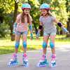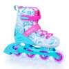 Built with breathable materials and cushioned comfort, these inline skates support long-lasting wear. The combination of shock-absorbing PU wheels and precision ABEC-7 bearings ensures a smooth ride that helps young skaters maintain balance. A one-push size adjustment system allows the skates to adapt as children grow, extending their usability. For added safety, the reinforced shell structure, secure fastening system and dependable brake work together to enhance stability. Finished with 8 light-up wheels and eye-catching pattern details, these inline skates transform every outing into a fun and memorable skating experience.