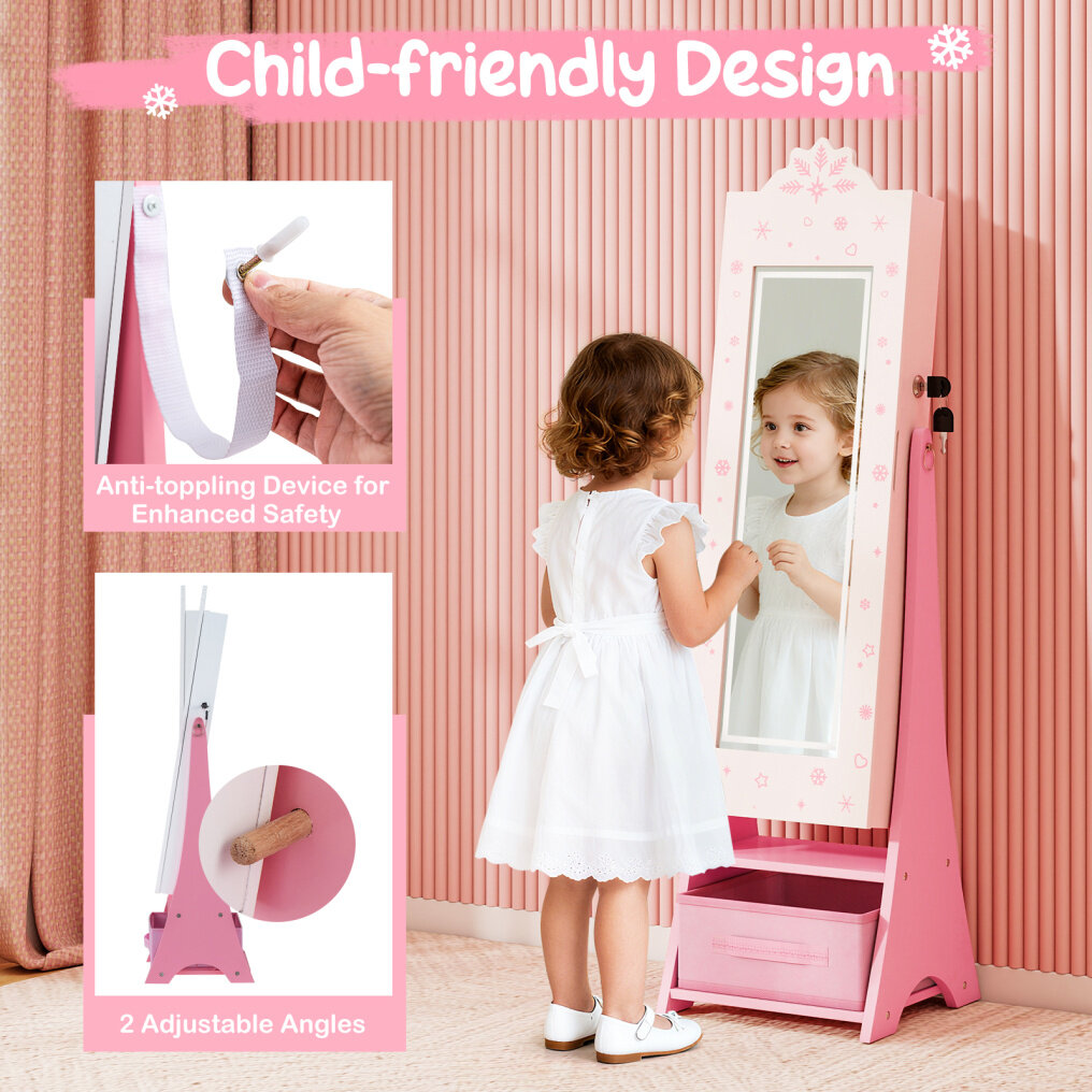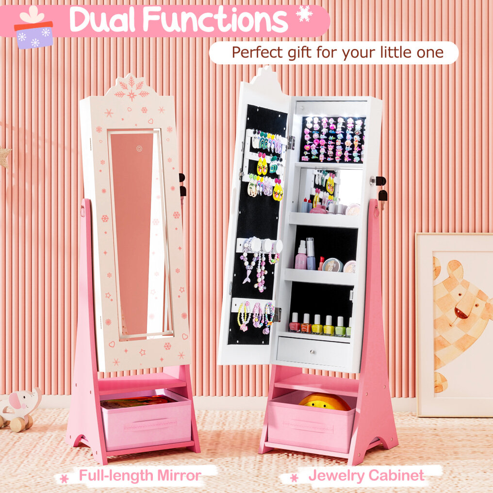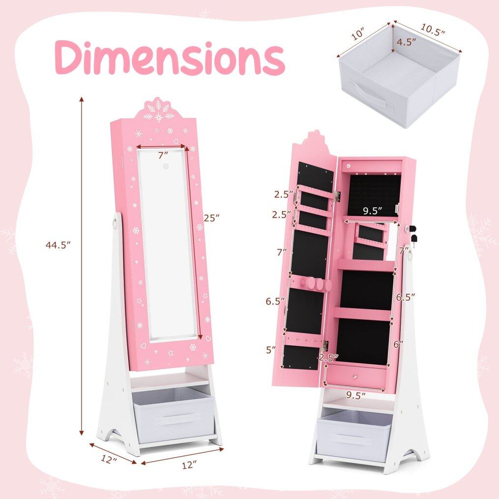● Perfect Gift for Kids: Designed with an adorable snowflake shape, this kids jewelry armoire with full-length mirror will be the perfect gift for birthdays or holidays as well as an attractive addition to any child's room. Besides, it complies with ASTM and CPSIA for reliable use.