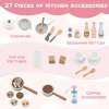 Ample and Organized Storage: The wooden kitchen set includes practical storage options such as hanging hooks, dish rack, towel rack, and open shelves. The ample storage space accommodates not just toys but also snacks, books, and other treasures, encouraging organization skills from an early age.