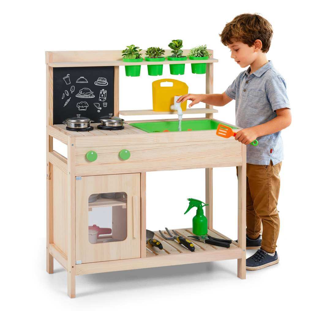● Spacious Storage with Organized Play: Messy play becomes a breeze with shelves and a spacious cabinet for all your child's cooking tools, garden accessories, and playtime treasures. This clever storage-focused design not only keeps the outdoor or indoor play area neat and orderly, but also helps kids practice sorting skills.