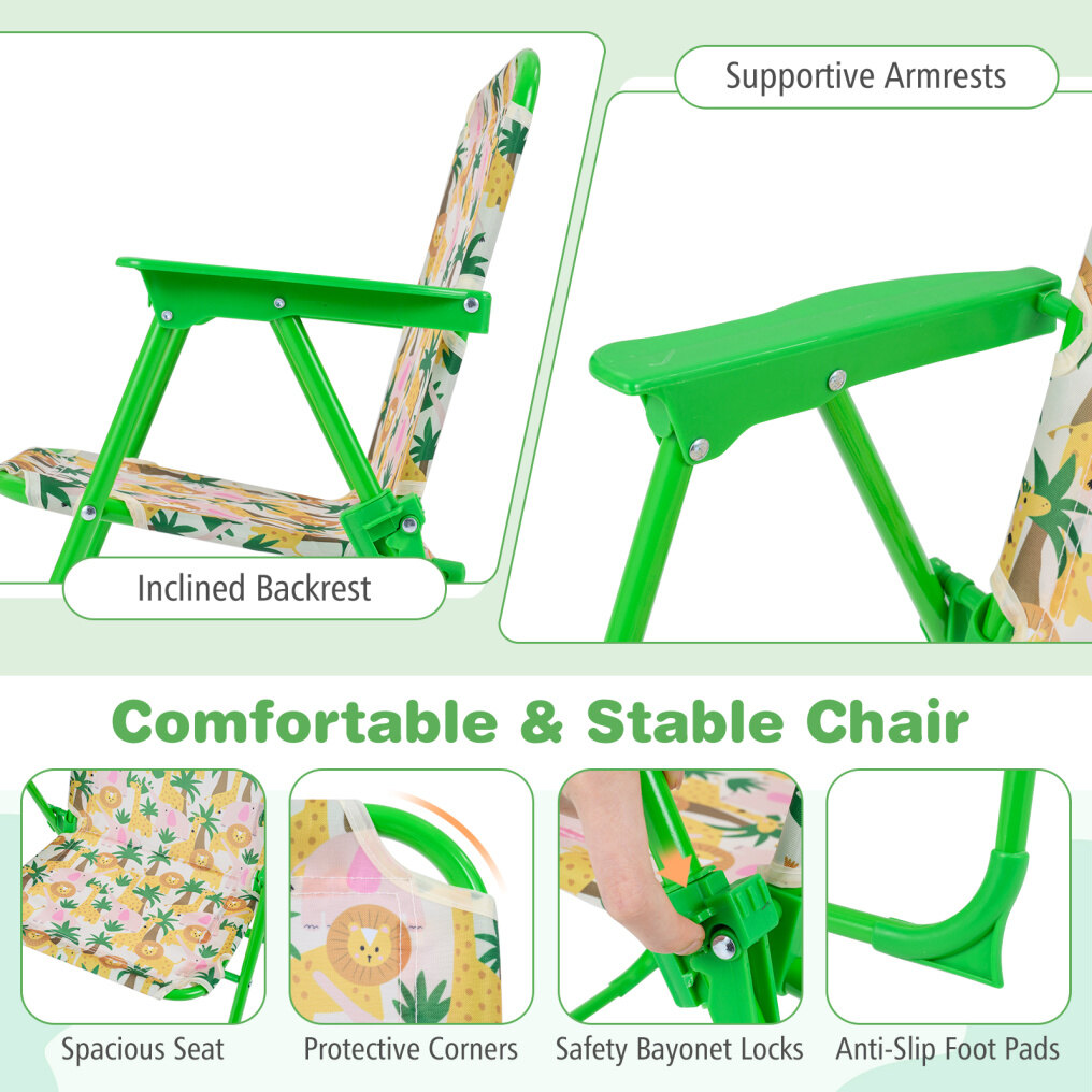 ● Comfy & Breathable Seating: Each chair features an inclined backrest to support kid's posture, armrests for relaxation, and a breathable seat that gives them room to wiggle. This comfort-first kids outdoor furniture helps children stay happily seated longer.