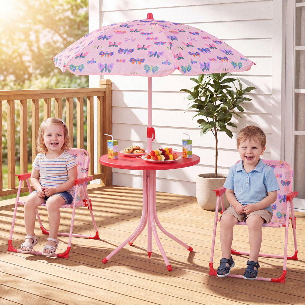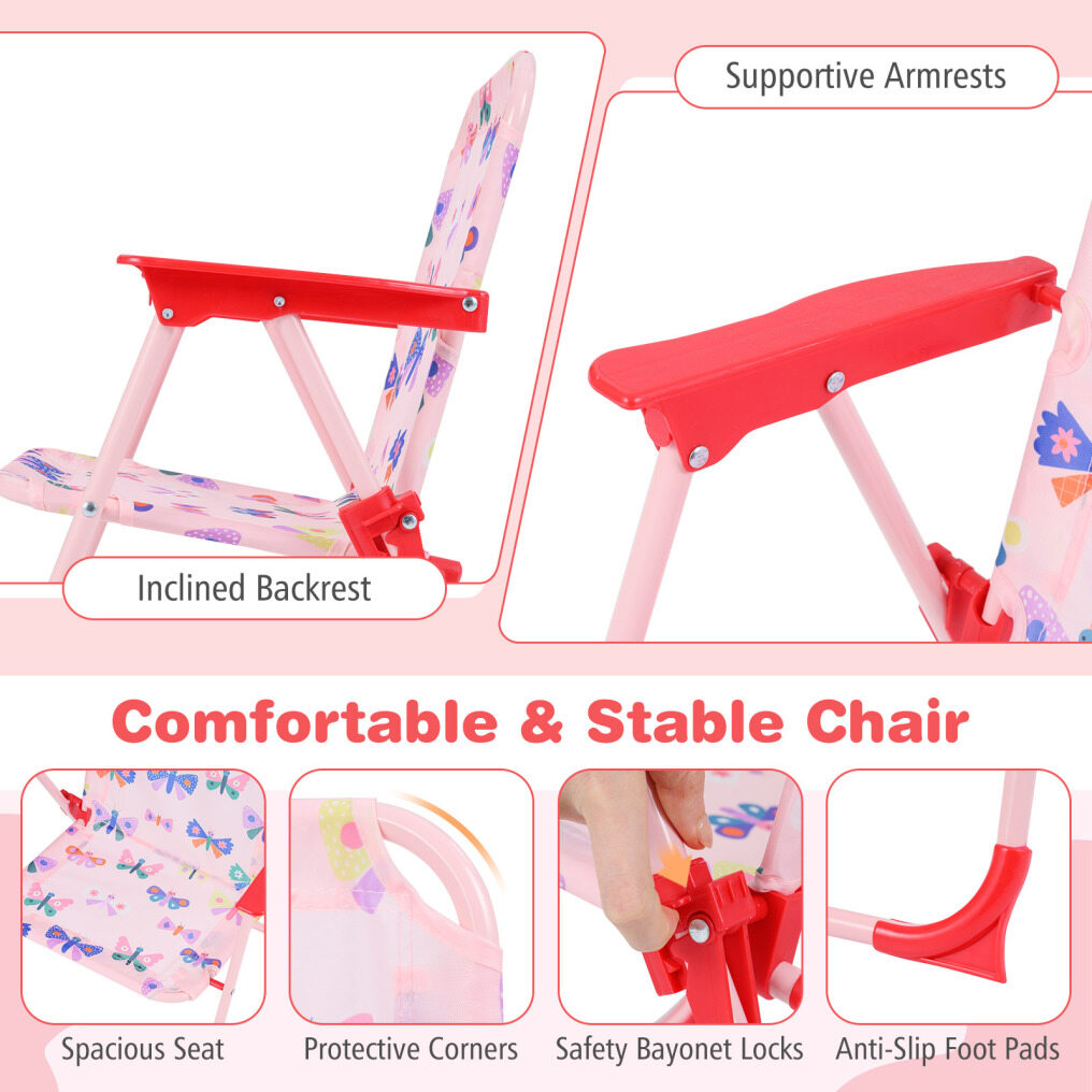 ● Comfy & Breathable Seating: Each chair features an inclined backrest to support kid's posture, armrests for relaxation, and a breathable seat that gives them room to wiggle. This comfort-first kids outdoor furniture helps children stay happily seated longer.