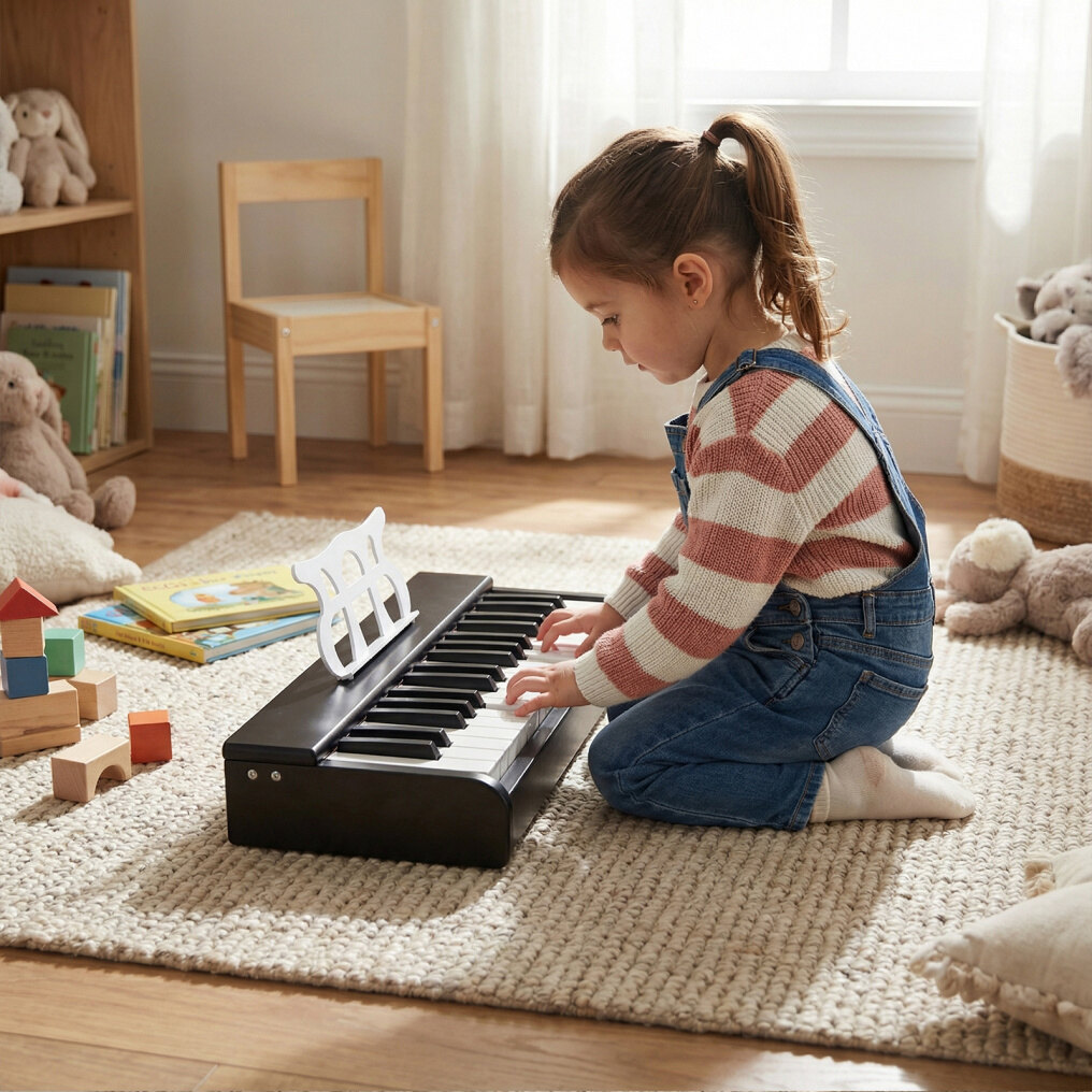 ● Immersive Music Experience: Equipped with a resonance hole for enhanced acoustics and high-quality sound output, this piano keyboard also includes a sophisticated music stand to hold sheet music, encouraging children to follow notes and develop musical skills.