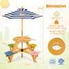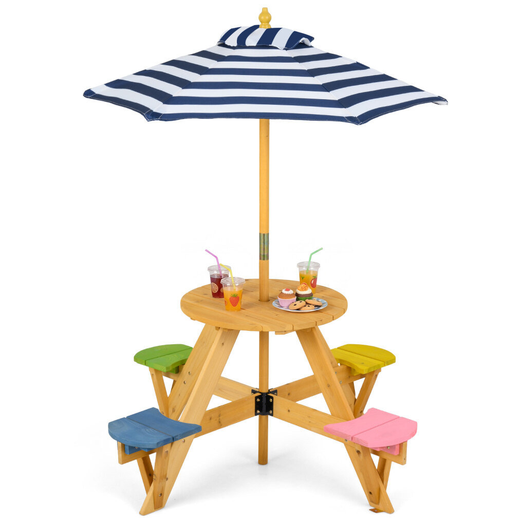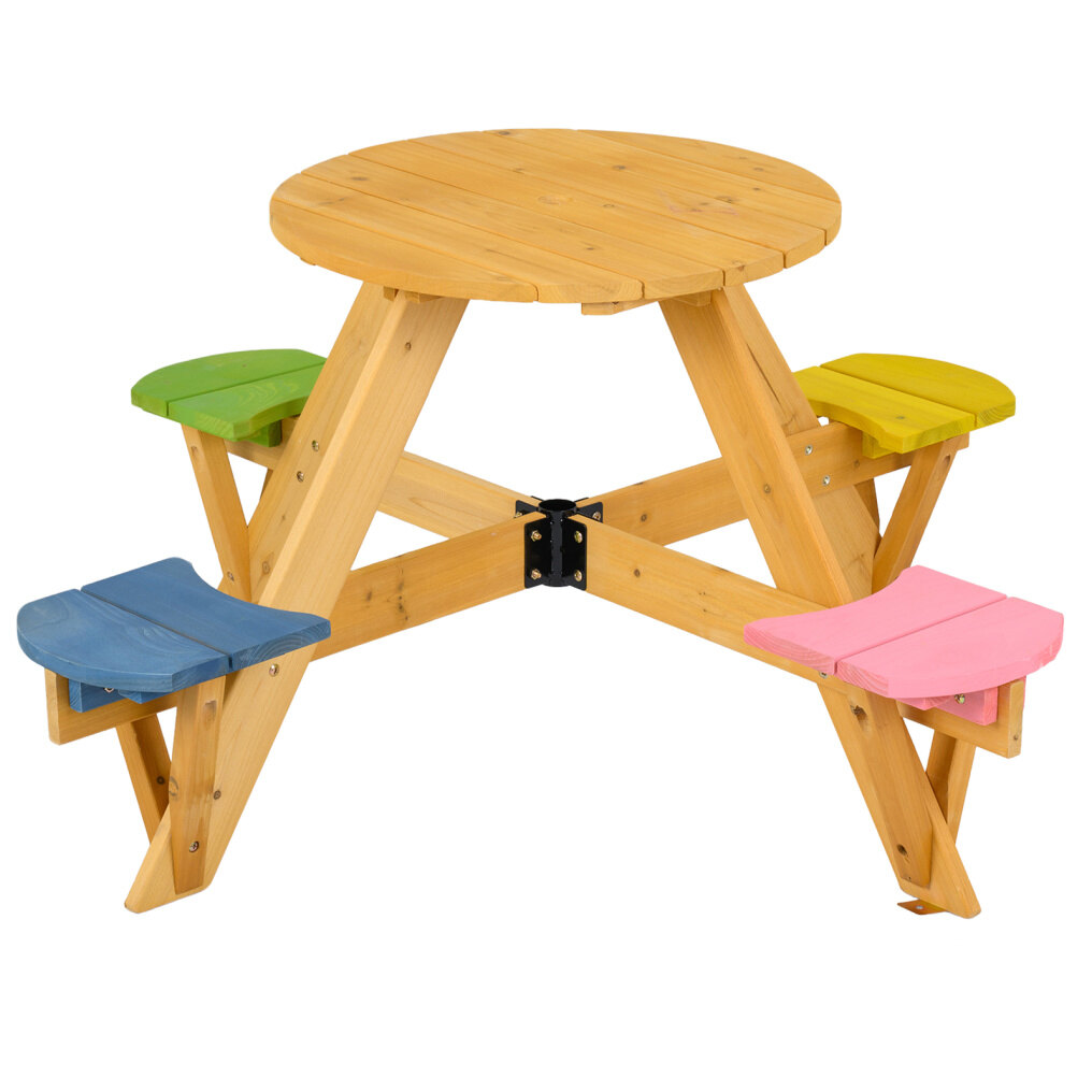● Enhanced Stability: Designed with a sturdy A-shaped structure and reinforced connections, this kids picnic table offers reliable stability during active play. It also includes ground fixing parts (ground stakes included) to secure the table firmly in place outdoors, preventing tipping or shifting on grass or soil.