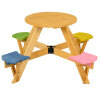 ● Round Table with Built Stools: This multi-use kids table and stool set includes a spacious table with 4 integrated stools, creating a fun and social space for children to have picnics, do crafts, read, play games, and interact together.