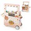 ● Complete Play Experience: This toddler vending shop playset encourages kids to enjoy the full pizza truck experience. Behind the cart, there's a preparation counter with storage shelves and a POS machine, helping kids role-play preparing and selling their delicious snacks.