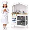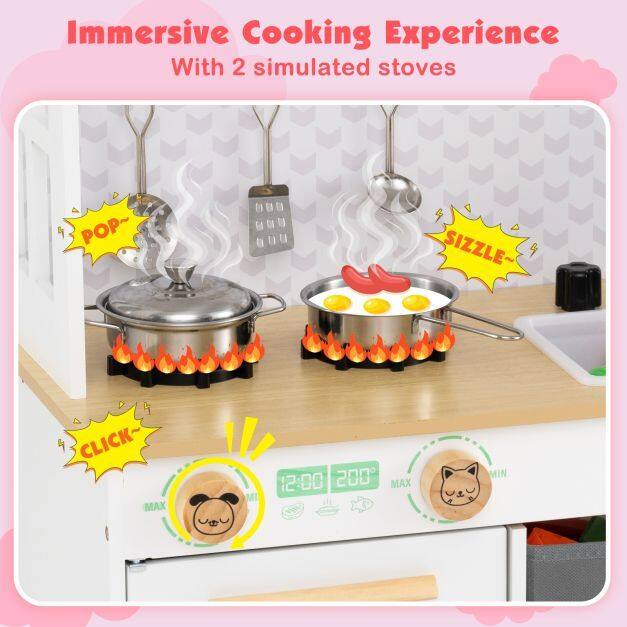 ● Great Cooking Play Experience: Cook up big dreams! Featuring 2 realistic stoves with rotation knobs that click, the kids play kitchen lets little chefs enjoy hands-on cooking adventures. The 19" high countertop is perfectly crafted for children ages 3-6, encouraging them to stand, reach, and create their own pretend meals.