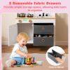 ● Practical Ample Storage Solutions: No more scattered toys - the toy kitchen set is equipped with 3 handy hanging hooks for utensils, 2 removable drawers for easy organization, and an enclosed cabinet to keep everything tidy. Each storage feature is accessible and easy for little ones to use.