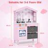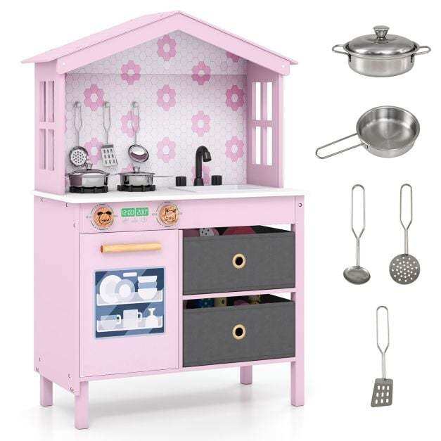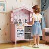 ● Adorable House Shape Inspires Creativity: The kids play kitchen's charming house design and lovely backdrop instantly spark endless imaginative adventures. Ideal for fostering creativity, sensory exploration, and social interaction, it invites children to cook, clean, and invent stories with friends and siblings.