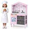 ● Great Cooking Play Experience: Cook up big dreams! Featuring 2 realistic stoves with rotation knobs that click, the kids play kitchen lets little chefs enjoy hands-on cooking adventures. The 19" high countertop is perfectly crafted for children ages 3-6, encouraging them to stand, reach, and create their own pretend meals.