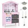 ● Practical Ample Storage Solutions: No more scattered toys - the toy kitchen set is equipped with 3 handy hanging hooks for utensils, 2 removable drawers for easy organization, and an enclosed cabinet to keep everything tidy. Each storage feature is accessible and easy for little ones to use.