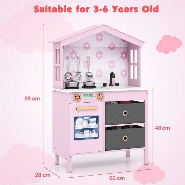 ● Safe, Reliable Construction: Built with young children's safety in mind, the wooden play kitchen showcases rounded corners to prevent bumps, sturdy pine wood handle and legs for lasting strength, and an included anti-tipping kit for extra stability. Parents can relax while kids focus on imaginative play.