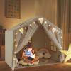 Enjoyable Kid Play House: This toddler play tent is designed with captivating star lights (require 2 AA batteries (not included)) and colorful pennant banners, creating endless fun for kids. Plus, the breathable mesh windows allow kids to see outside while increasing air circulation.