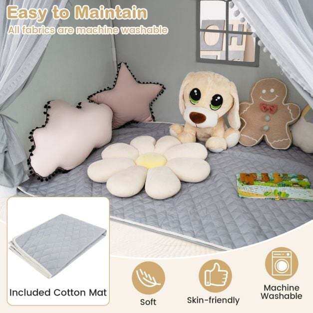 Comfortable Padded Mat: Features a soft and breathable cotton pad, this play tent house creates a safe and comfortable space for kids to play, read or nap inside the tent. Additionally, the mat is machine washable, which is easy to clean and saves you time.