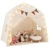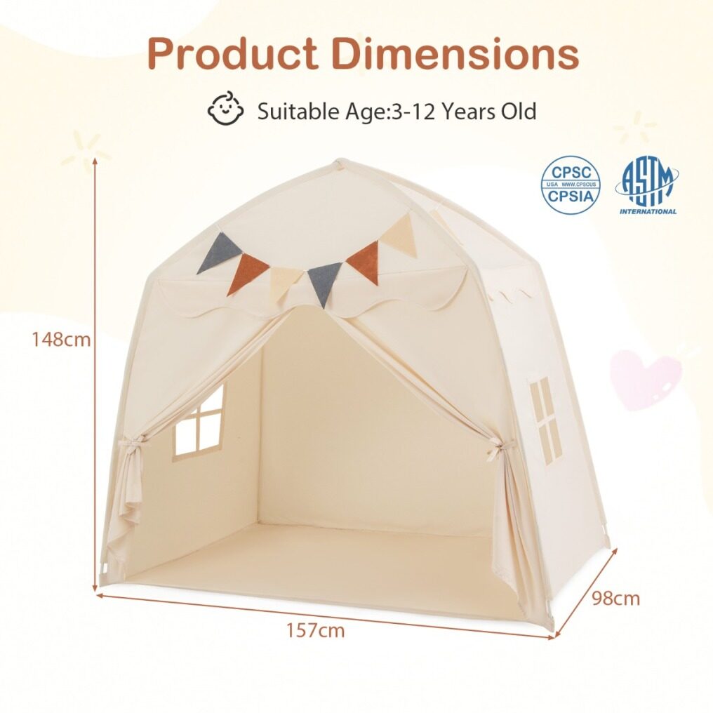 ● Adorable Design: Featuring boho door curtains, and cute windows, along with the delightful bonus of warm white globe string lights and colorful pennant flags, the play house tent makes a charming haven for day and night, inviting endless imaginative plays and fun-filled sleepover parties.
