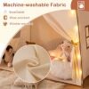 ● Adorable Design: Featuring boho door curtains, and cute windows, along with the delightful bonus of warm white globe string lights and colorful pennant flags, the play house tent makes a charming haven for day and night, inviting endless imaginative plays and fun-filled sleepover parties.