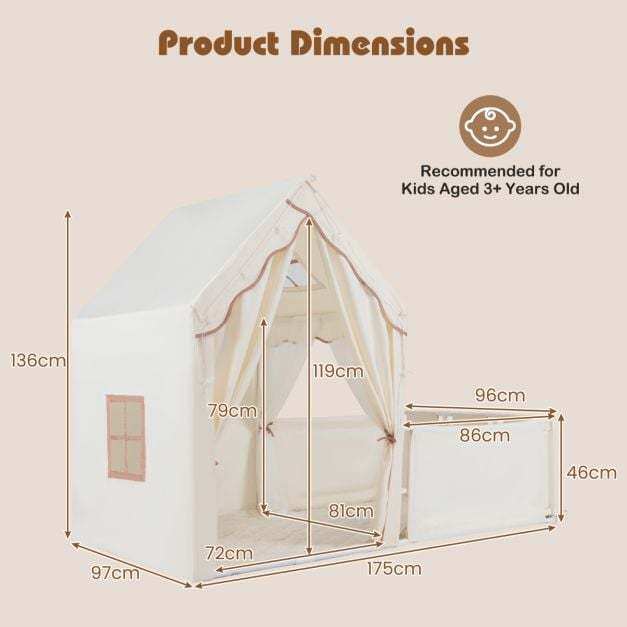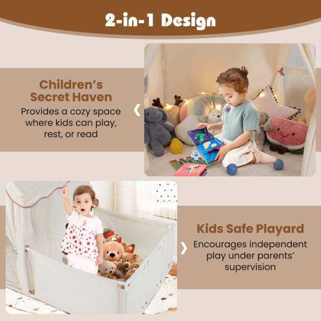 ● Dual-Purpose Play Space: The toddler tent functions as a children's secret haven, allowing children to engage in imaginative play with their favorite toys or get lost in a book. More than that, the playpen can double as a safe play fence or transform into a ball pit for even more interactive fun.