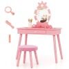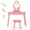 Safe and Robust Construction: Supported by solid pine wood legs with non-slip foot pads, this kids vanity table and stool set stands stable and sturdy against enthusiastic play. Children's safety comes first. The anti-tipping device and shatterproof acrylic mirror enhance safety and ensure a safer environment for children to enjoy their playtime.