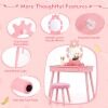 Dual-use Design with Detachable Top: Featuring a detachable top, this vanity table easily converts into a writing desk, providing a versatile space for your child to draw, read, or complete homework. This makes it more than just a makeup desk with a stool; it's a true investment in your child’s creativity and education.