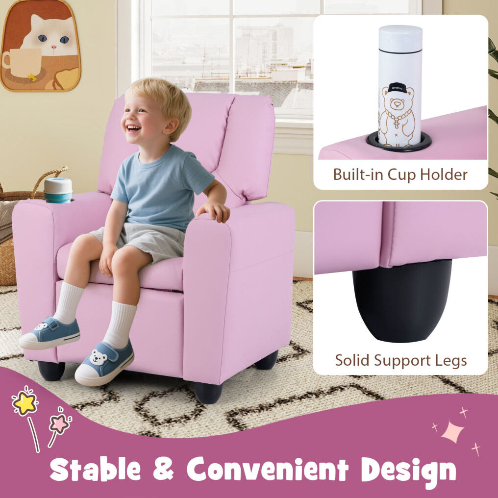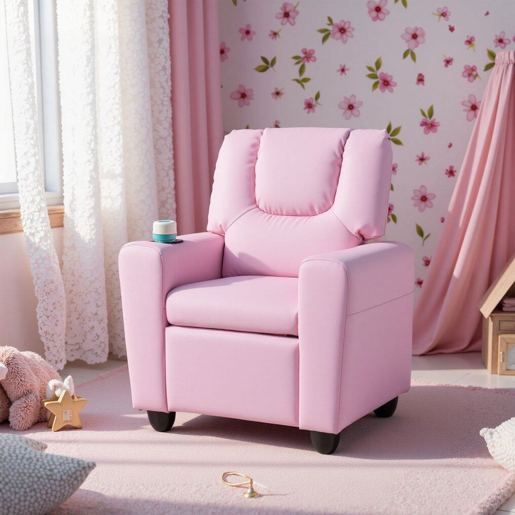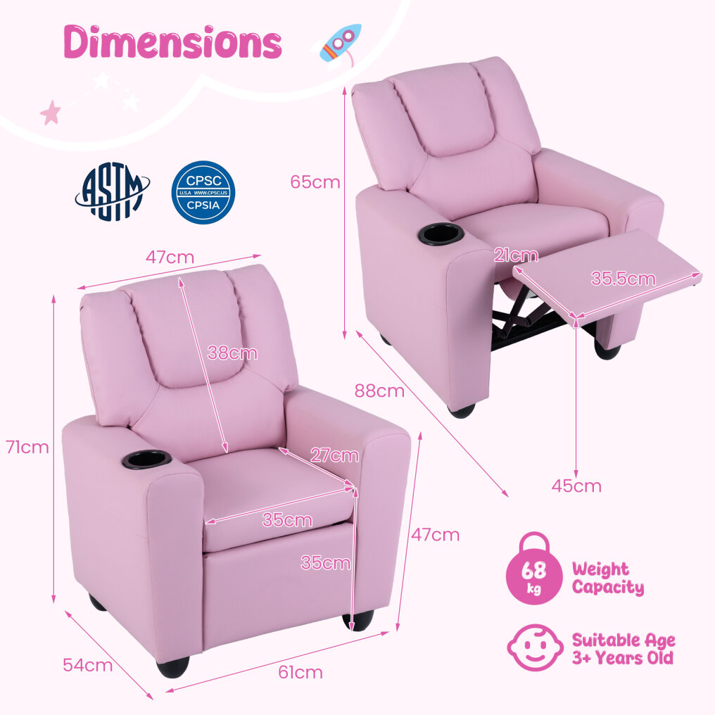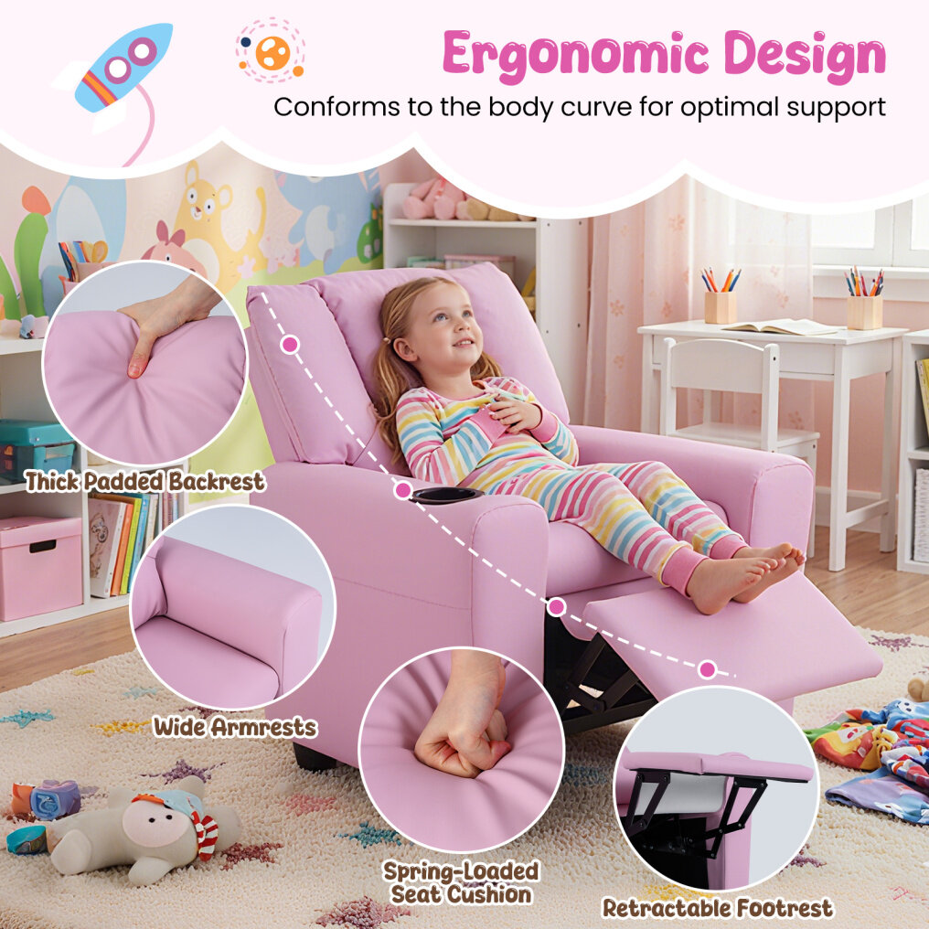 ● Well-Made Details: This kids recliner is built with a solid wood frame that can support up to 150 lbs, suitable for kids age over 3 years old. The anti-slip feet protect your floor from damage, while the cup holder adds convenience.
