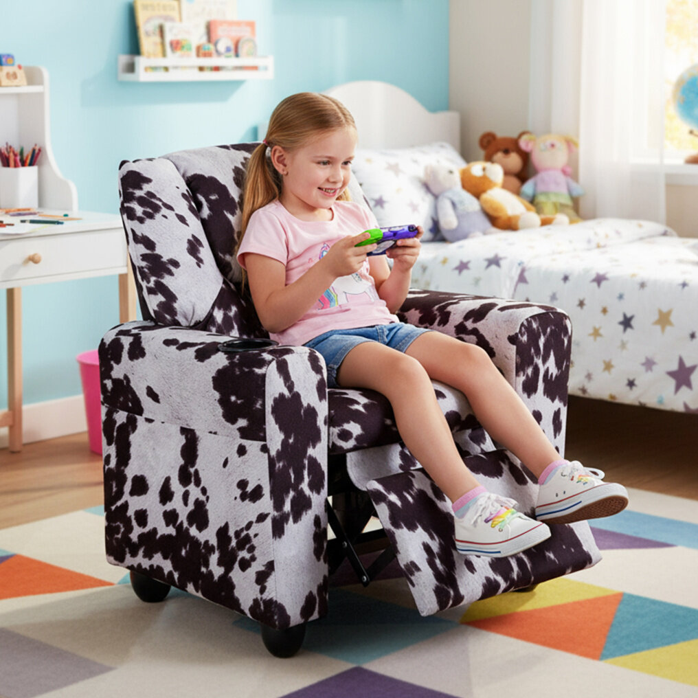 ● Well-Made Details: This kids recliner is built with a solid wood frame that can support up to 150 lbs, suitable for kids age over 3 years old. The anti-slip feet protect your floor from damage, while the cup holder adds convenience.
