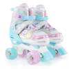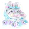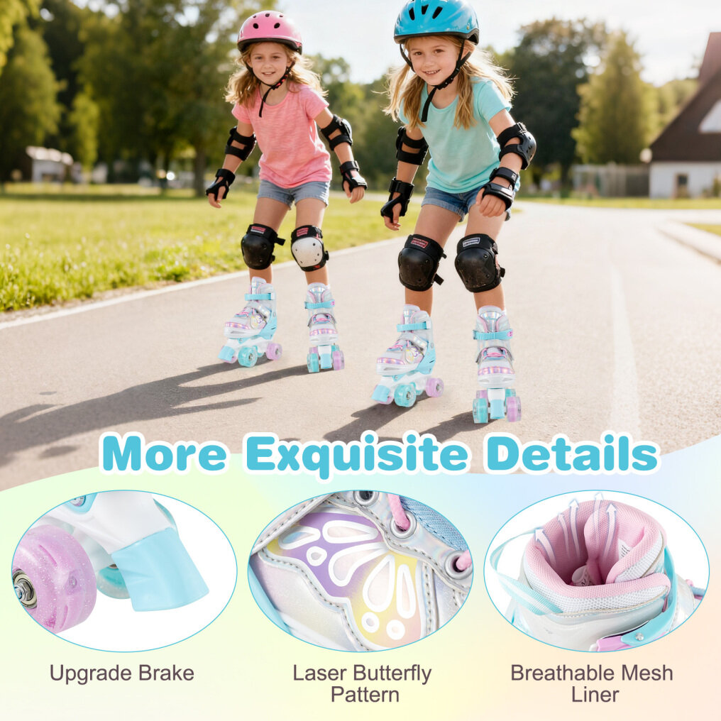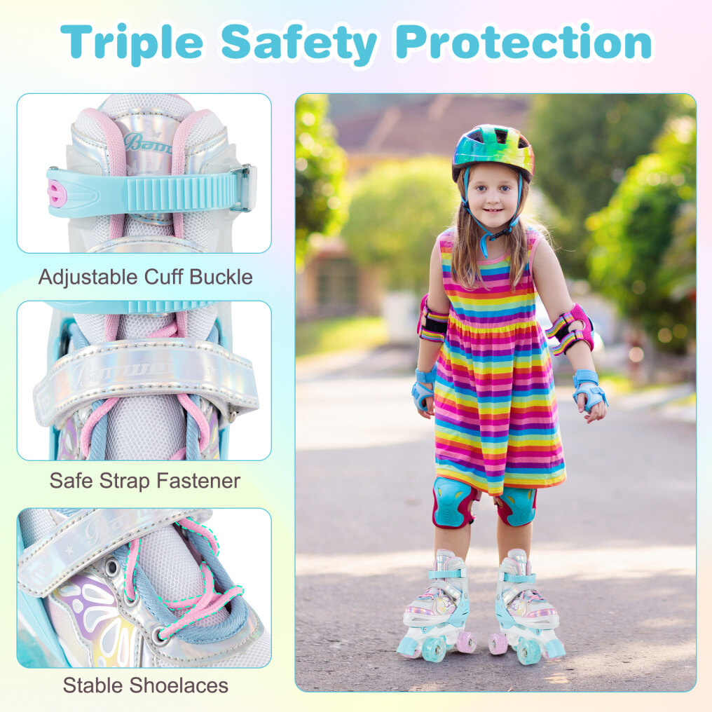 • Cool Illuminated Wheels: Whether cruising on neighborhood sidewalks or skating at the rink, the motion-activated wheels shine brilliantly with every movement without batteries. These glowing wheels turn routine outings into festive occasions, making the roller skates a hit for kids and their friends.