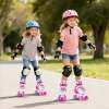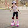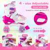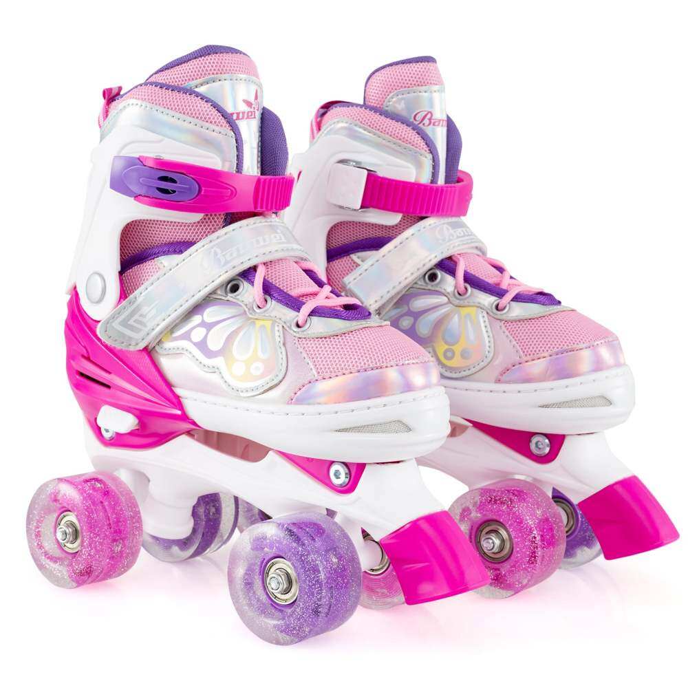 • Cool Illuminated Wheels: Whether cruising on neighborhood sidewalks or skating at the rink, the motion-activated wheels shine brilliantly with every movement without batteries. These glowing wheels turn routine outings into festive occasions, making the roller skates a hit for kids and their friends.