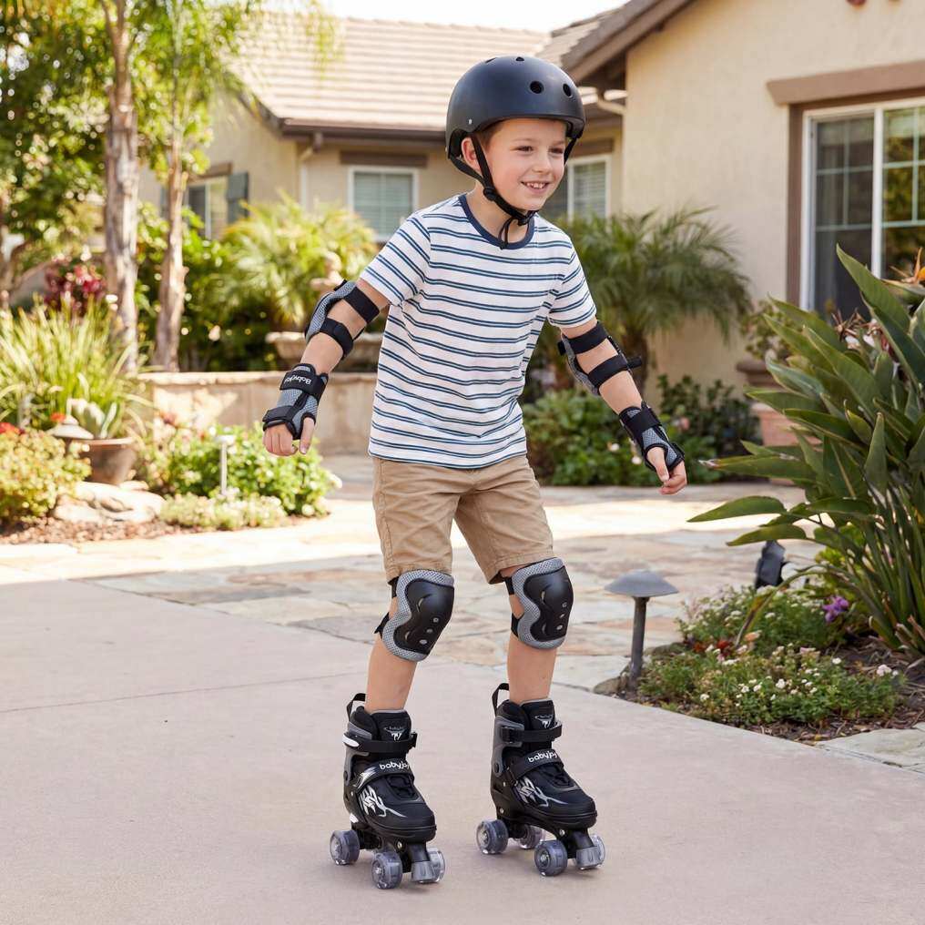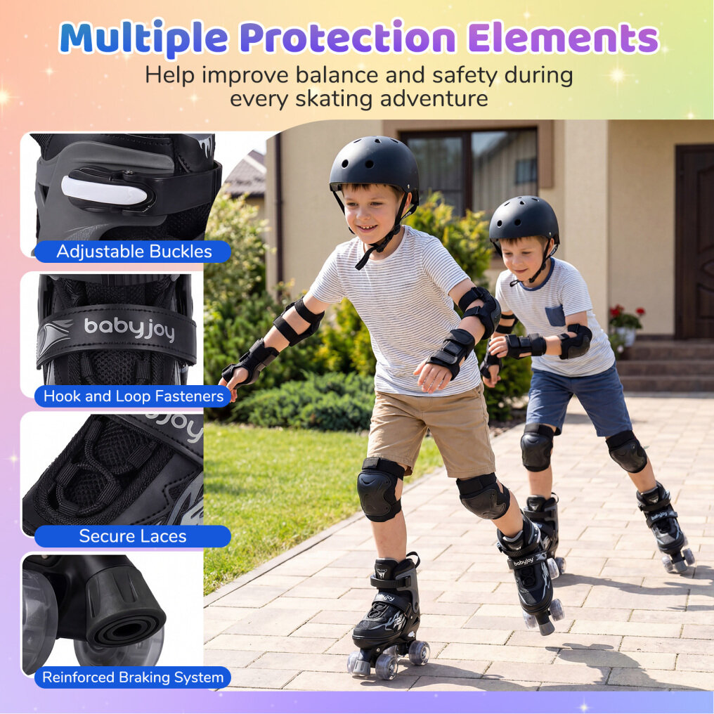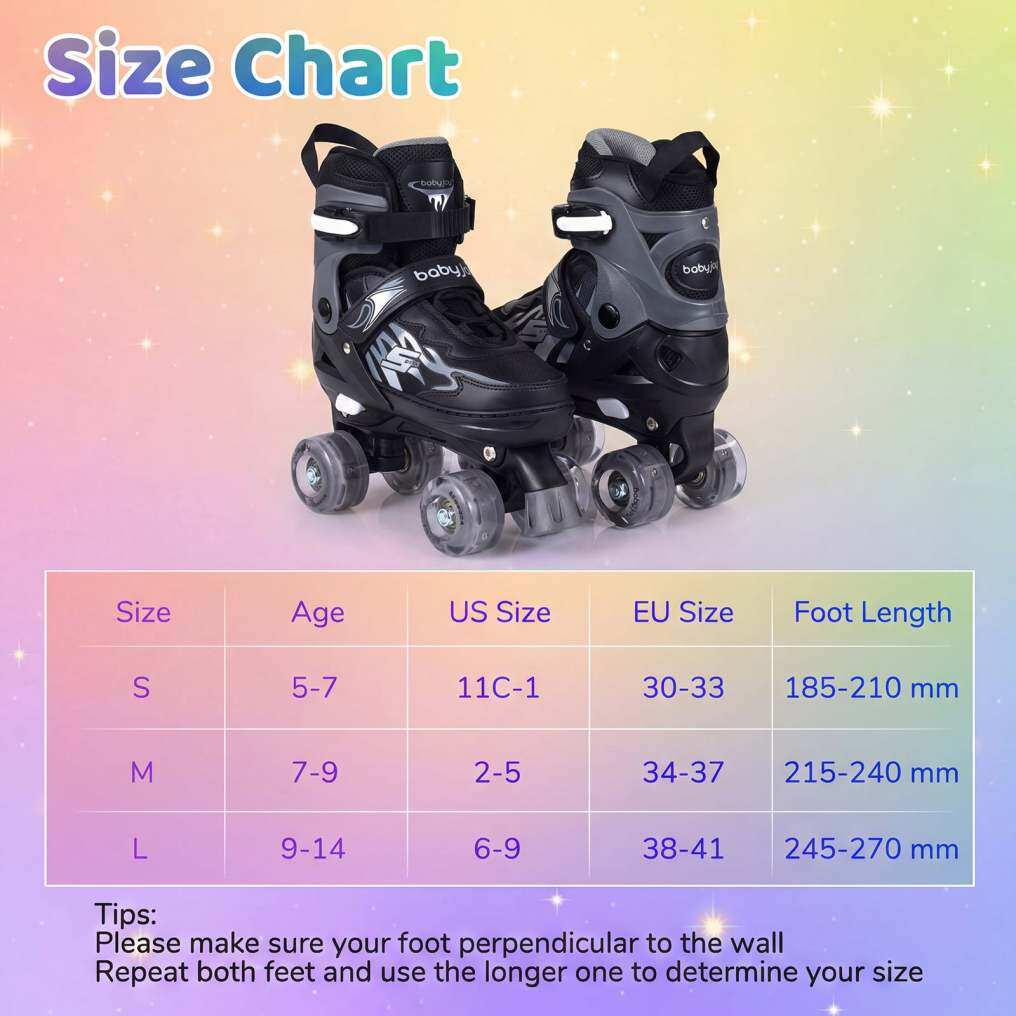 ● Adjustable Sizing for Growing Kids: Engineered to grow with your child, these skates feature a convenient one-button adjustment system. With a simple press, they smoothly expand across 4 sizes, ensuring a consistently secure and comfortable fit for kids ages 7-9.