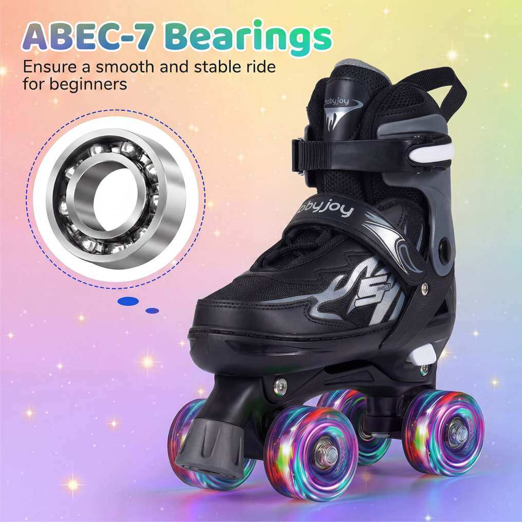 ● Battery-Free Light-Up Wheels: Equipped with motion-activated glowing wheels, these light-up roller skates illuminate with no batteries required. In addition, the vibrant lights add excitement to every ride, whether on neighborhood sidewalks or at the rink, making each outing more enjoyable.