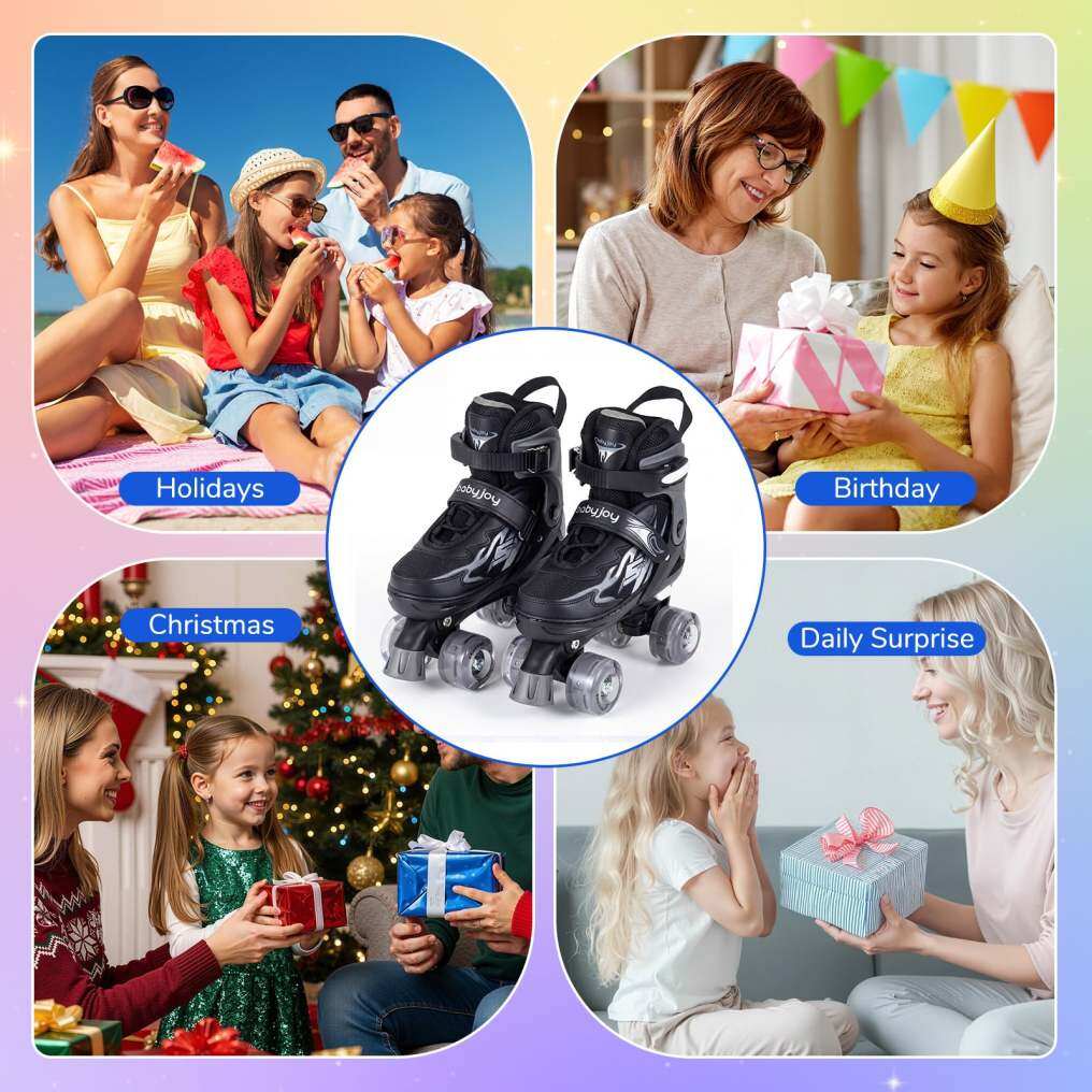 ● Eye-Catching Gift for Active Play: Featuring stylish patterns, these rollerskates are suitable for smooth indoor floors and outdoor paths. Besides, they make a thoughtful gift for birthdays, holidays, or daily surprises while encouraging speed, balance, and coordination.