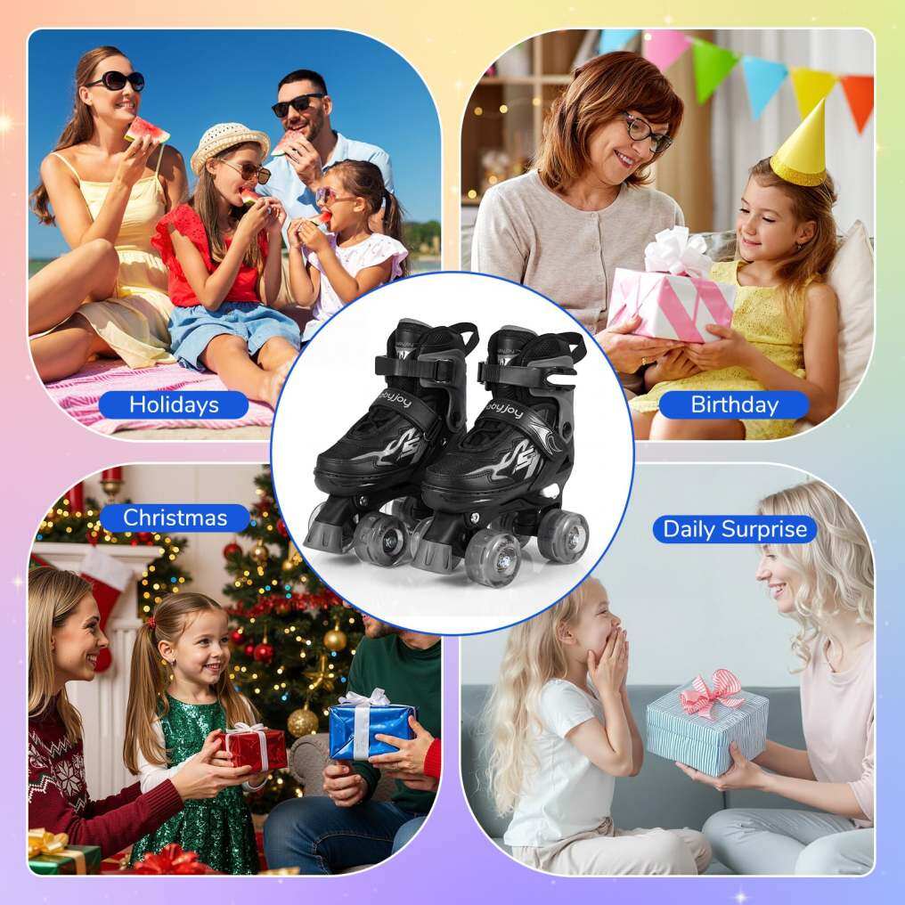 ● Eye-Catching Gift for Active Play: Featuring stylish patterns, these rollerskates are suitable for smooth indoor floors and outdoor paths. Besides, they make a thoughtful gift for birthdays, holidays, or daily surprises while encouraging speed, balance, and coordination.