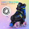 ● Comfortable Skating Experience: Built for comfort and control, these quad roller skates feature breathable mesh fabric and a soft padded lining to keep feet comfortable during long sessions. Plus, high-quality 82A PU wheels paired with ABEC-7 bearings ensure a smooth and stable ride for beginners.