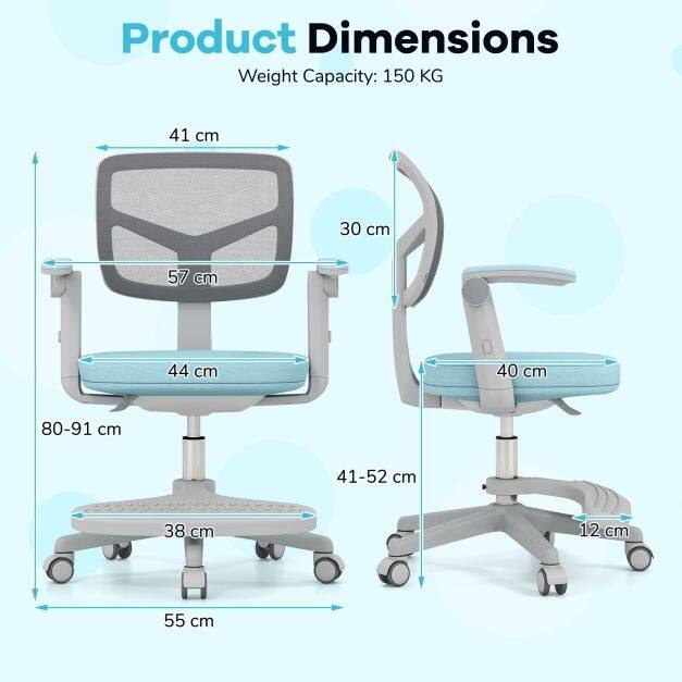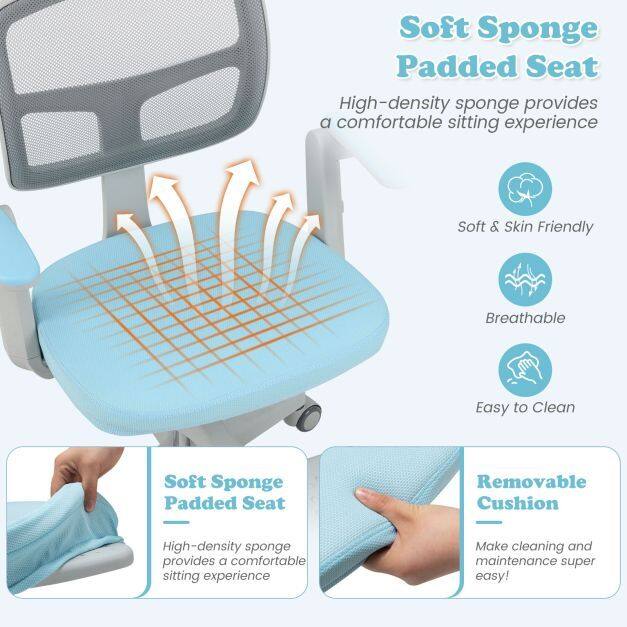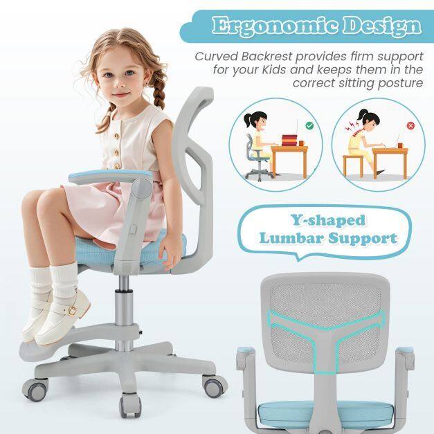 Ergonomic Support: Designed with an ergonomic mesh backrest and an Y-shaped lumbar support, this kids computer chair promotes a healthier sitting posture. The breathable mesh keeps your child cool and comfortable during long study sessions or while engaged in creative projects.