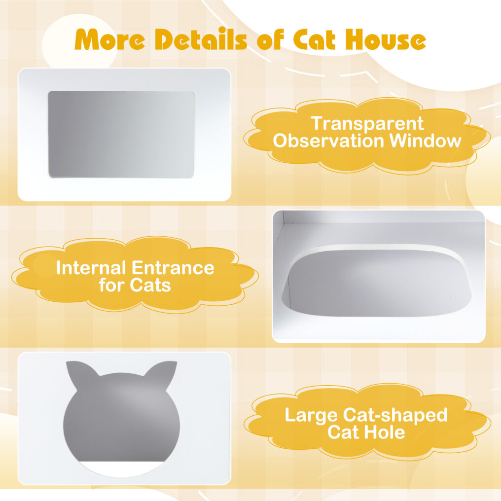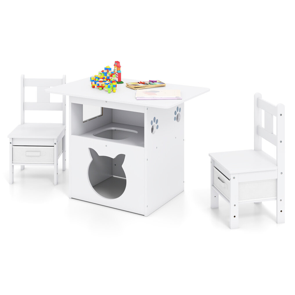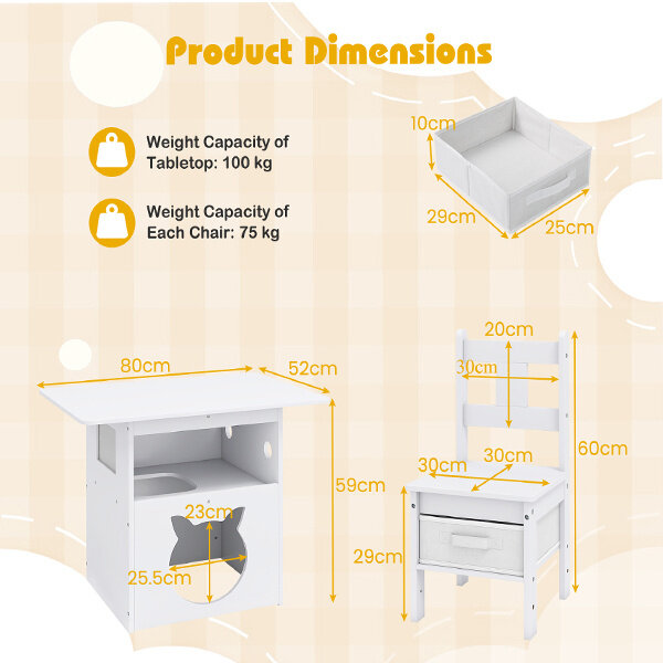 ● 2-in-1 Practical Design: The 2-in-1 kids table can also be used as a cat house for cats to play, explore, or relax, which holds up to 2 cats at the same time. The large cat-shaped cat hole and internal entrance allow your cats to freely get in and out.