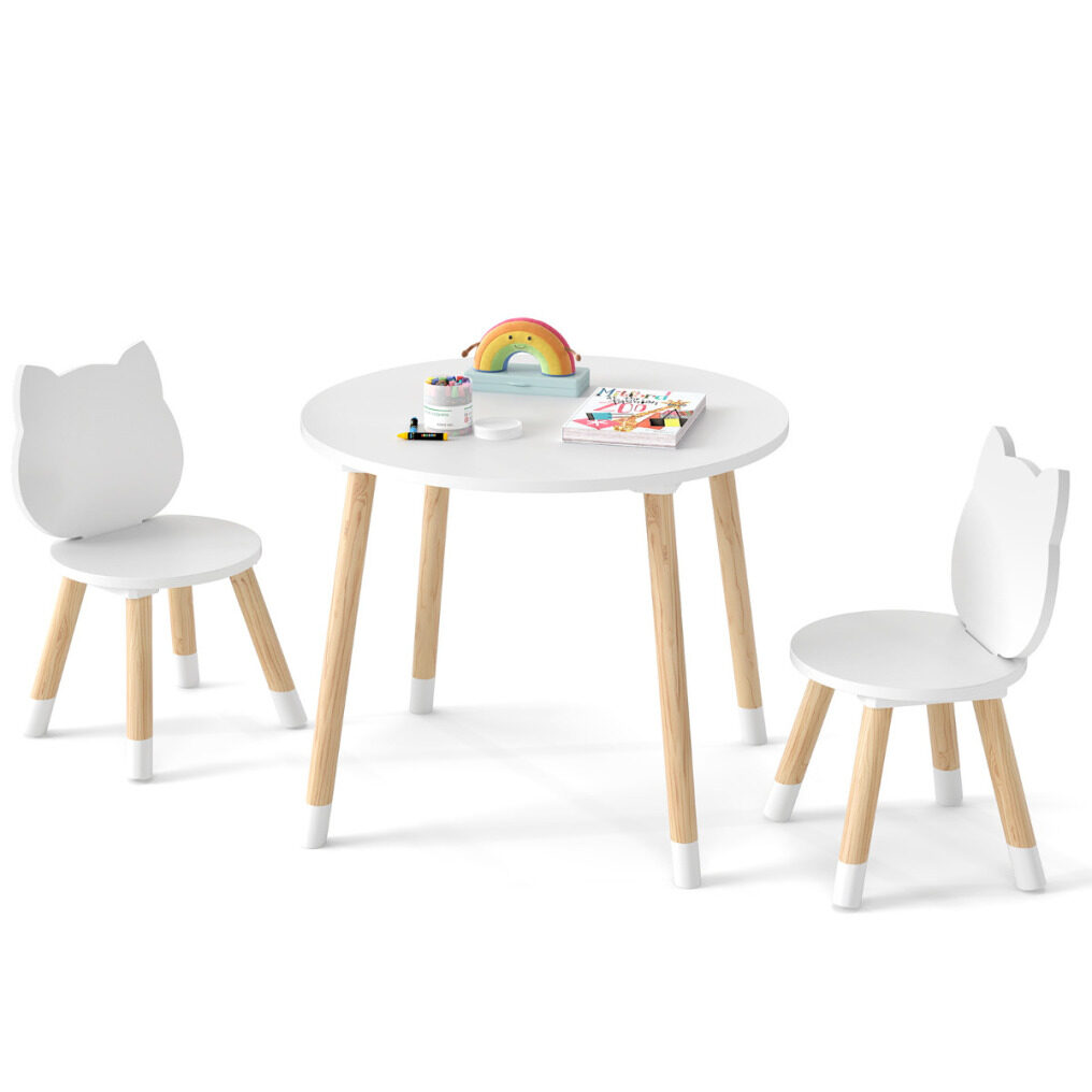 Kitty-Shape Designed Chairs: This kids table and chair set includes a table and 2 chairs. Each chair features a cute and comfy backrest that provides both comfort and playful appeal, creating a welcoming space for children.
