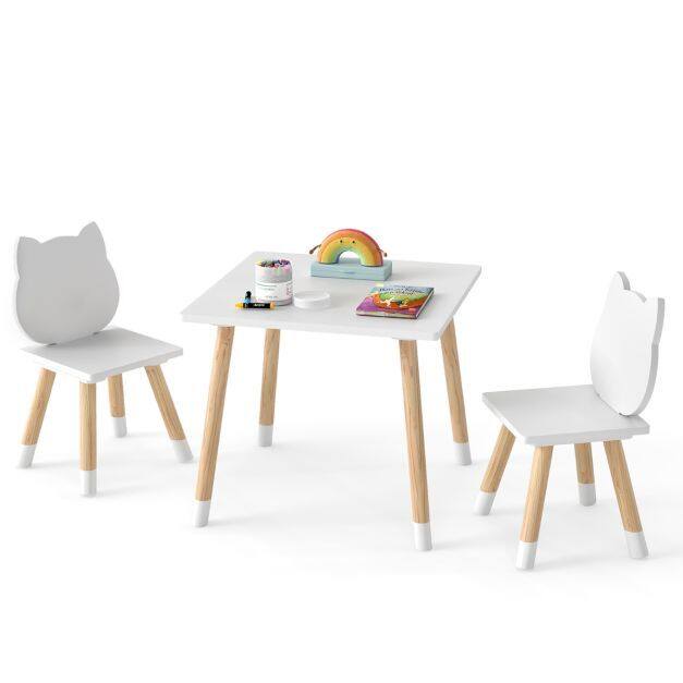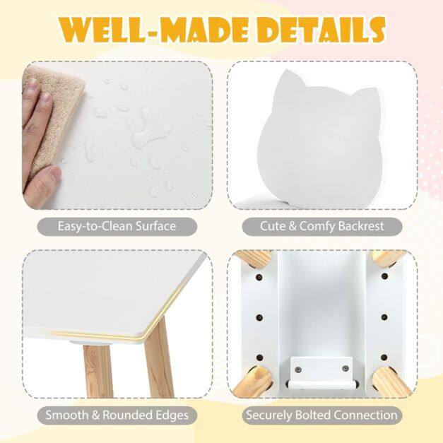 Kitty-Shape Designed Chairs: This kids table and chair set includes a table and 2 chairs. Each chair features a cute and comfy backrest that provides both comfort and playful appeal, creating a welcoming space for children.