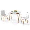 Designed for safety, the kids desk and chairs set has smooth, rounded edges and securely bolted connections to prevent bumps and offer stability during everyday use. Constructed with solid pine wood legs, the toddler table and chair set brings timeless natural beauty and lasting durability. The child-friendly size and ideal height support proper posture. Perfect for a range of activities, this versatile set fits seamlessly into homes, classrooms, or daycare centers and makes a thoughtful gift for little ones.