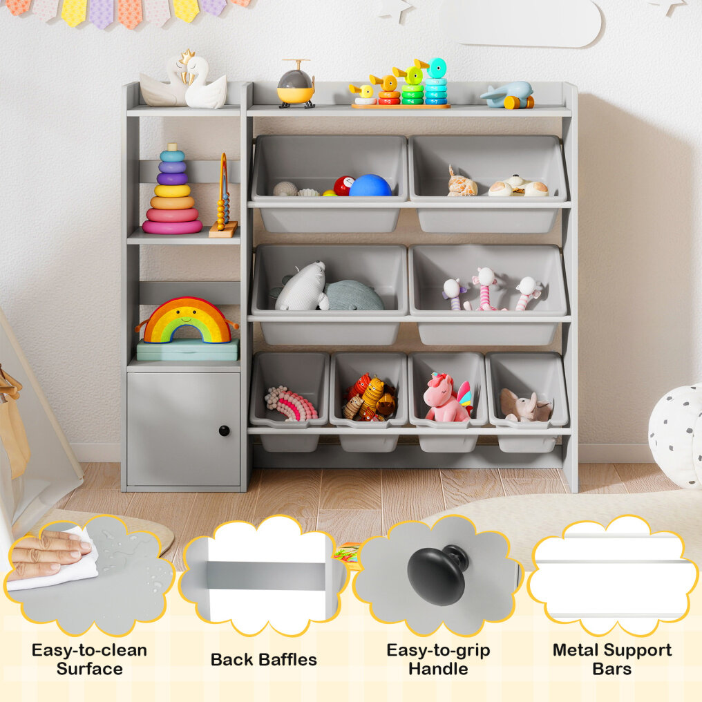 ● Ample Space for Toys & Books: Featuring open shelves, a single-door cabinet, and 8 storage boxes in two different sizes, the kids toy organizer provides generous space for toys, books, puzzles, and more. It keeps your child's room tidy and encourage kids to organize their items.