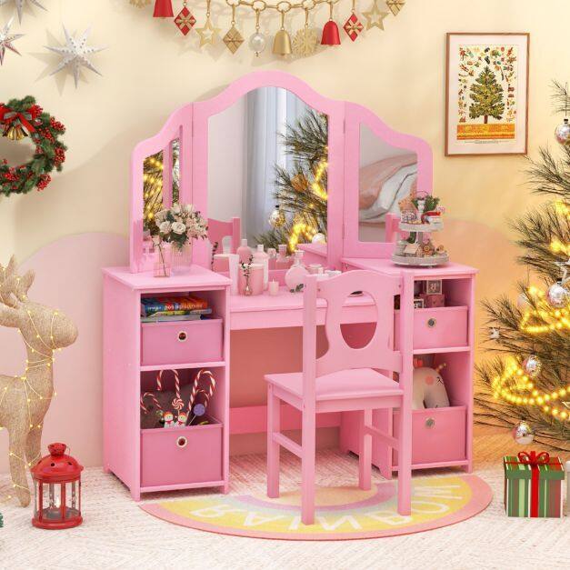 Perfect Gift for Your Little One: Complete with a matching chair, this vanity set boasts a design that is both functional and aesthetically pleasing. The charming appearance fits well into various room decorations, making it a delightful gift for young ones.