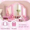 Tri-Folding Mirror: Made from shatterproof acrylic, this tri-folding mirror ensures the safety for children. It also provides a full view for grooming or dress-up experiences, enhancing the overall charm and functionality of the toddler vanity set.