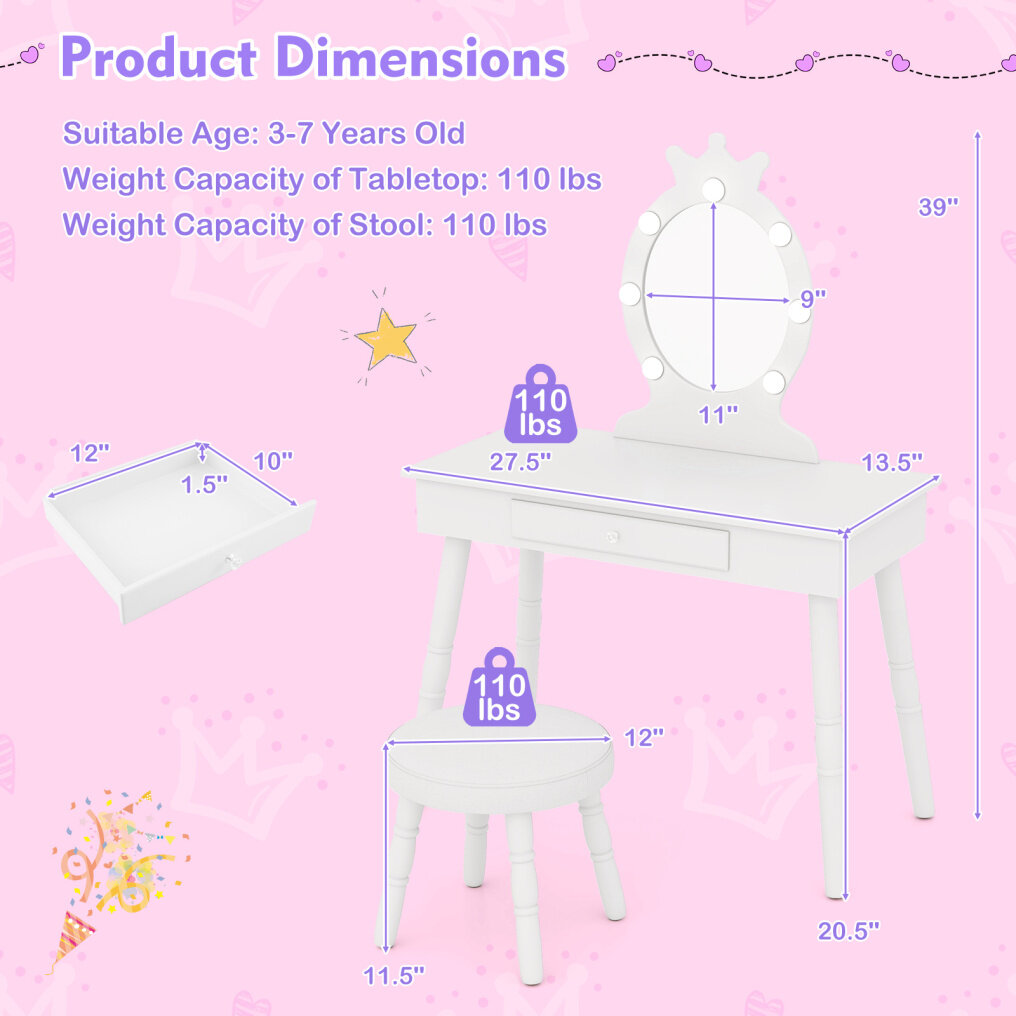 -Anti-toppling design secures the vanity table to the wall