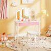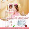 Stable & Safe Structure: This EN71 compliant kids vanity table and stool set comes with an anti-toppling device, solid pine wood legs, smooth rounded edges, and anti-scratch foot pads, ensuring peace of mind and long-lasting quality.