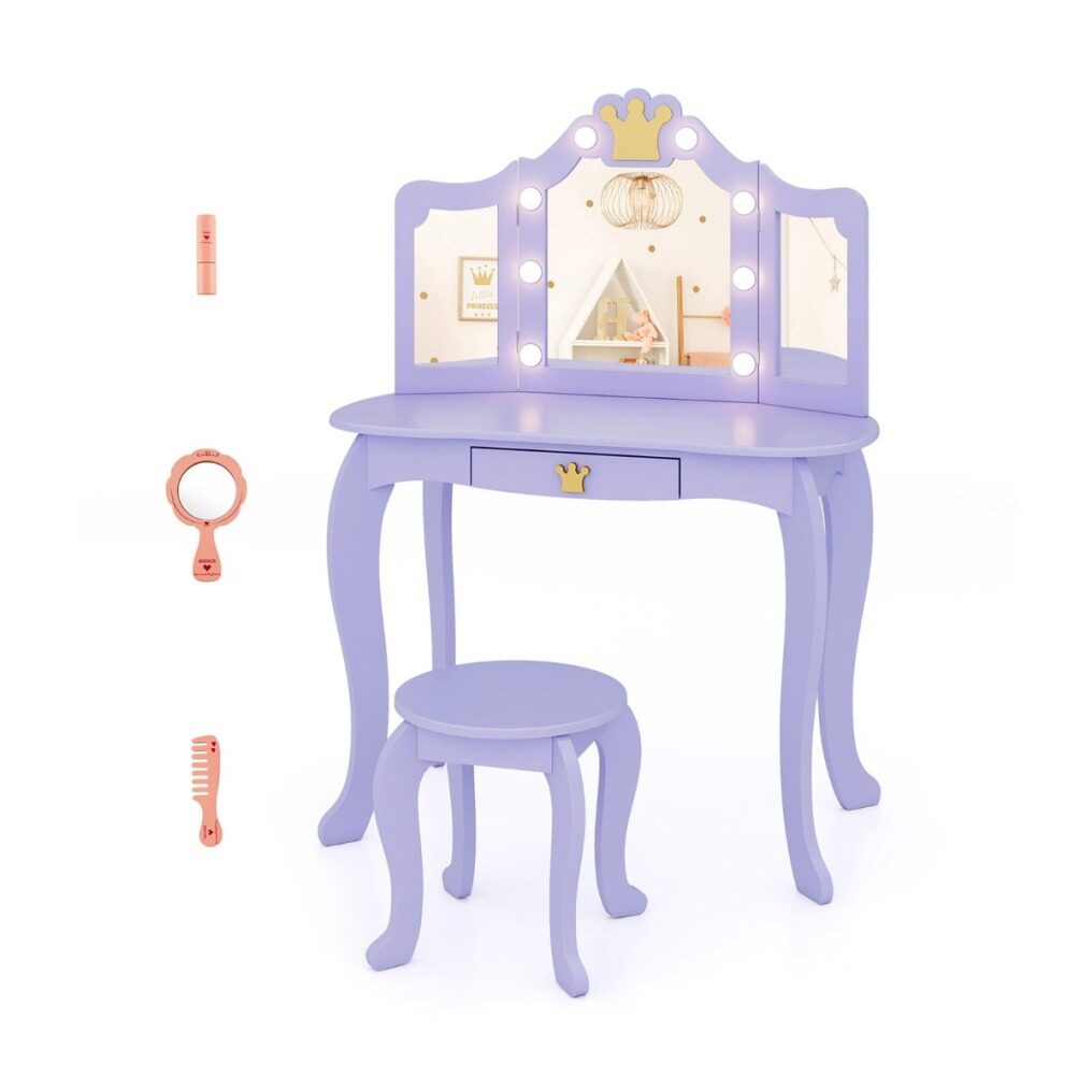 【Built-in Drawer and Matching Stool】The vanity table features a sliding drawer so children can store their jewelry, cosmetics, hand mirrors, and other items. The vanity set also comes with a matching stool for added comfort.