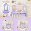 【3-Part Folding and Removable Mirror】The vanity set features a 3-part folding mirror to ensure high-definition reflection in all directions. Furthermore, the 3-part folding mirror is removable, so your child can use it as a vanity or writing desk.