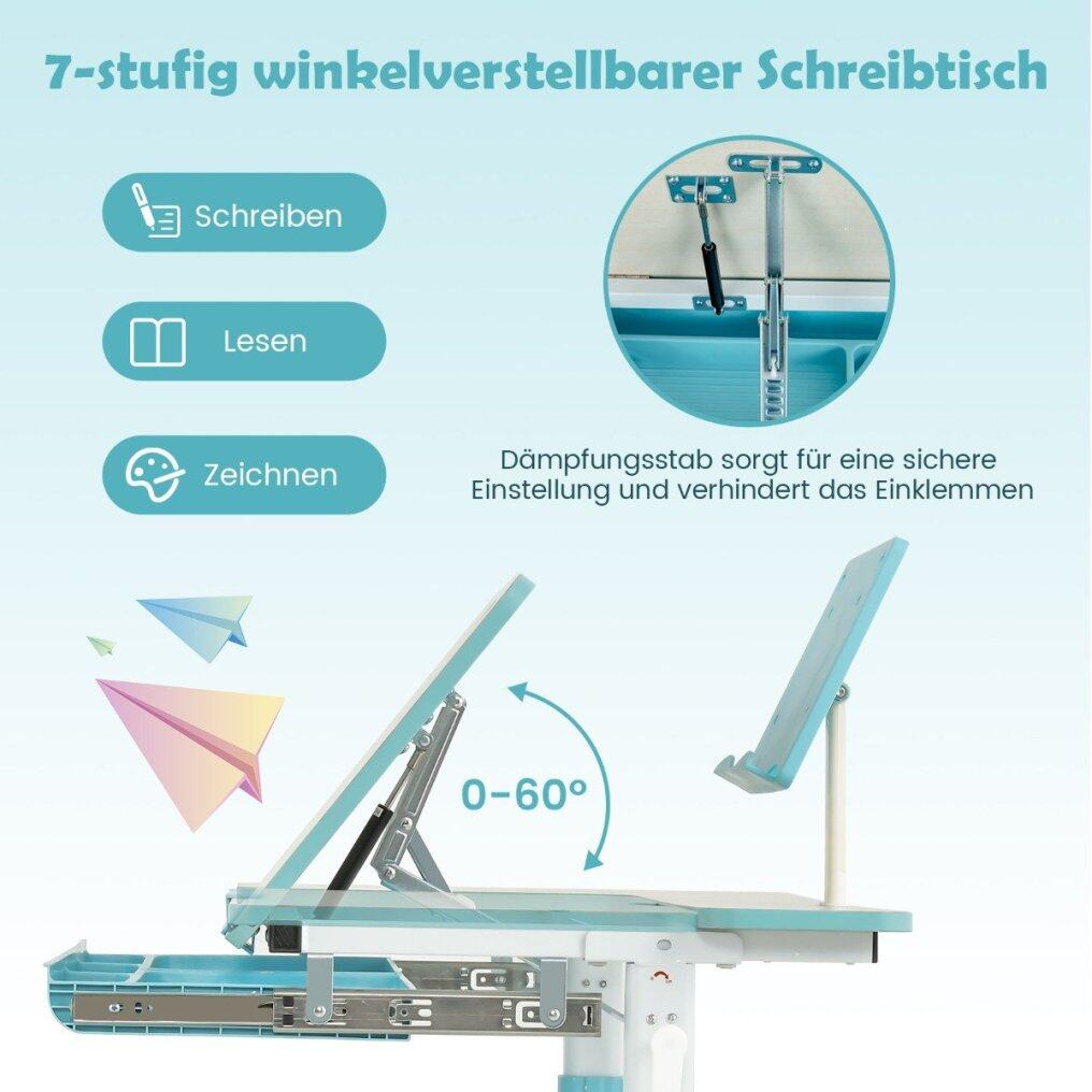 ● Angle-Adjustable Desktop: The 7-level adjustable desktop can be adjusted within the range of 0-60°, fulfilling kids' needs of writing, reading or drawing. In addition, damping rod ensures safe adjustment and avoids pinching, which perfectly protects kids' safety.