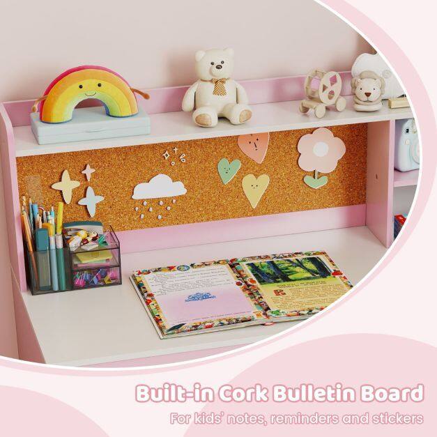 Integrated pinboard: A pinboard is located directly on the desk where children can pin important memories, artwork, or photos, encouraging creativity and organization and personalizing the workspace.
