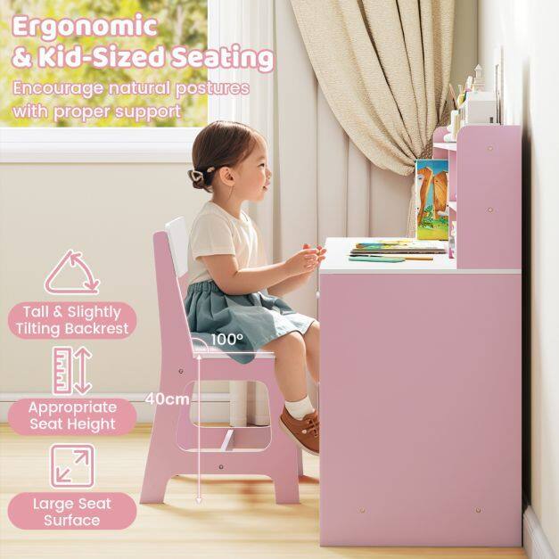 Comfortable chair: This children's desk includes a matching chair with a 100° ergonomic backrest for optimal comfort and support during long study sessions. Rounded edges and hidden screws prevent unwanted injuries.