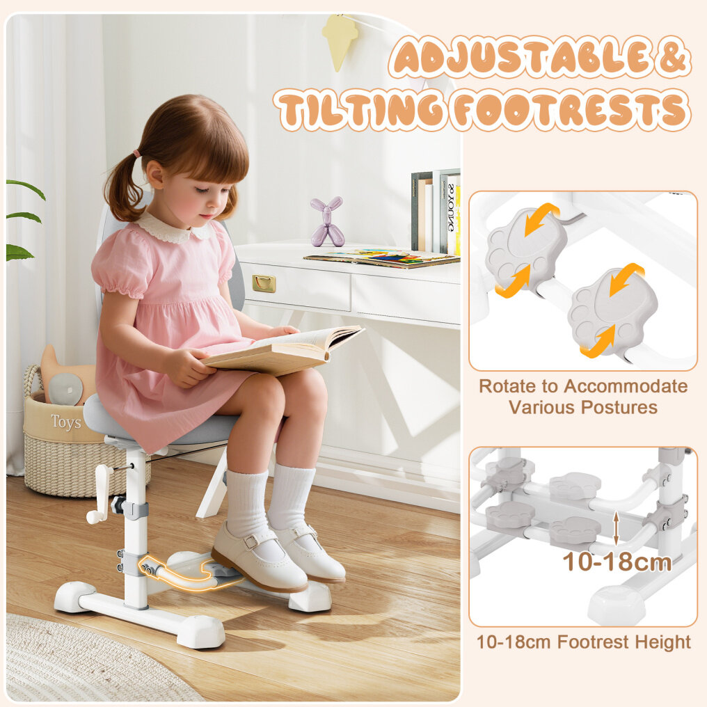 Adjustable & Reclining Footrest: The footrest on our kids' computer chair adjusts from 10-18 cm, growing with your child. Additionally, the footrests rotate to accommodate various postures, keeping legs properly aligned and adding extra comfort.