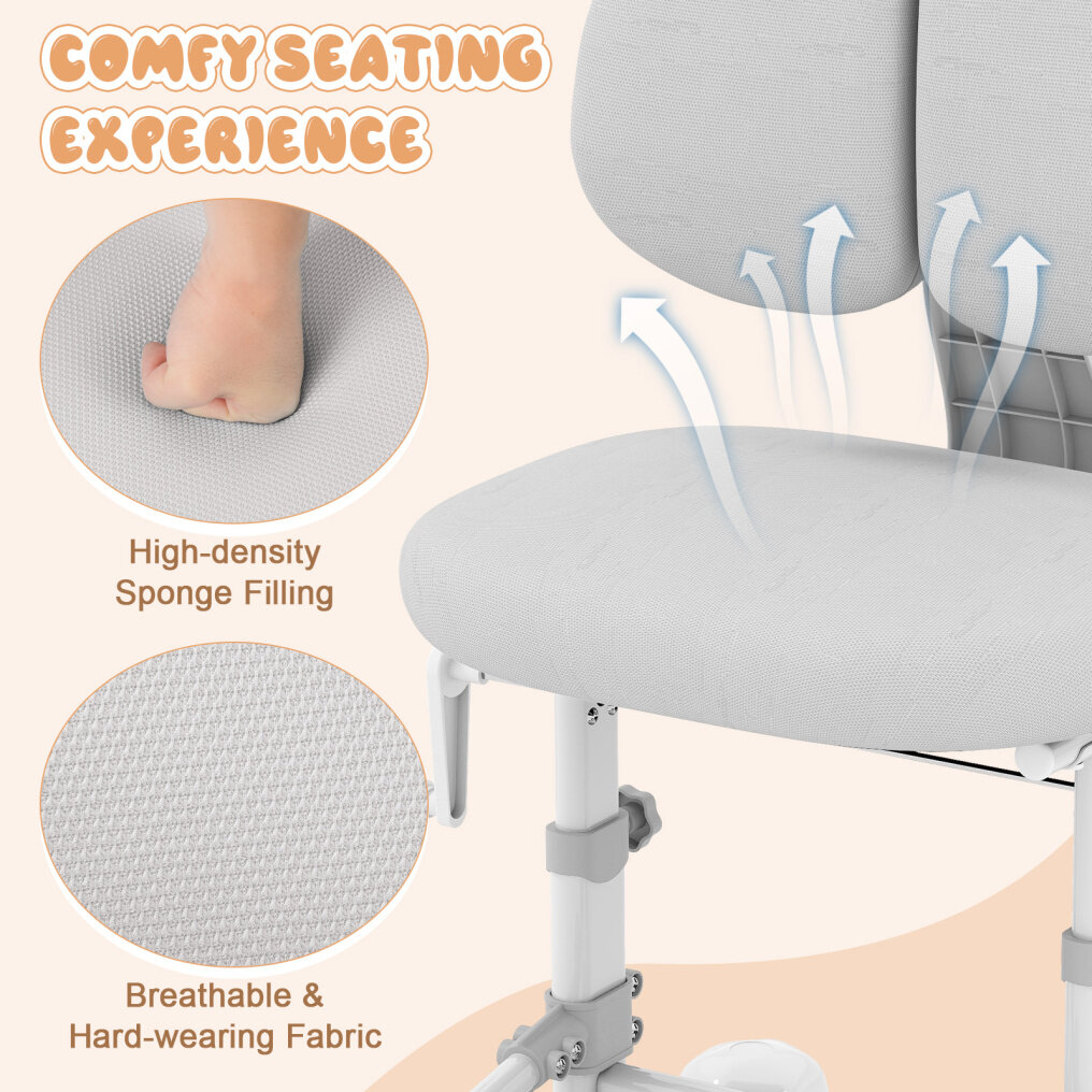 Comfortable Sitting Experience: Padded with high-density foam, our children's study chair offers firm yet comfortable support for long study sessions. Upholstered in breathable, durable fabric, the seat withstands daily use, keeping your child cool and comfortable.