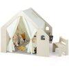 Safe and stable construction: Made from certified wood materials, the playhouse impresses with its durability and stability. Rounded edges protect against injuries, while hook-and-loop fasteners ensure a secure connection and additional safety.